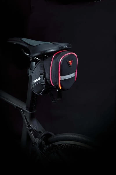 Topeaks Aerowedge iGlow is an aerodynamic, lightweight, under-seat bag with Integral Glow technology for enhanced nighttime visibility. Mounts with Topeak’s innovative Quick Release Buckle system to fit all railed saddles. Includes two CR2032 batteries.