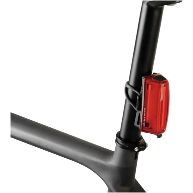The RedLite 80 BT features 80 lumens and five lighting modes that can be wirelessly controlled via Bluetooth 5.0 by WhiteLite 800 BT or TetraBand BT. Bidirectional tool-free mounting with the included silicone strap for quick installation and removal on aero/round seatposts or seatstays