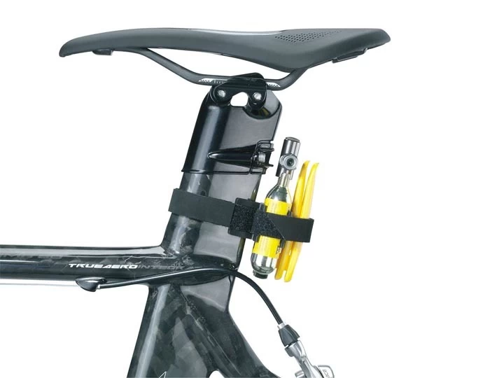 The unique mounting module straps to the aero or round tube, and provides lightning fast access to the AirBooster inflator, extra CO2 cartridge and tire levers. The perfect CO2 tire repair solution for racing, endurance or triathlon events.