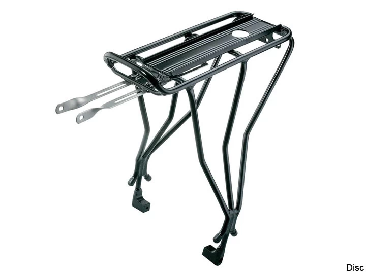 Strong tubular aluminum rack with QuickTrack™ system for all Topeak MTX TrunkBags and MTX Rear Baskets. Fast, easy mounting of BabySeat™ II without use of tools. Rack is designed for compatibility with disc brakes.