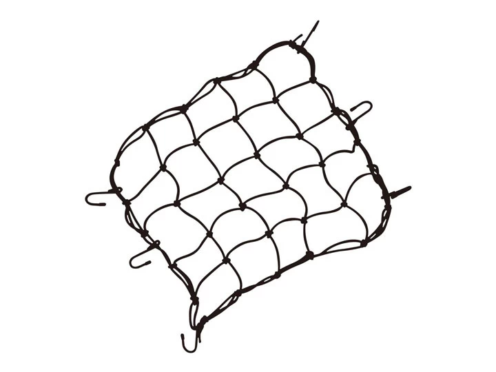 Elastic nylon cargo net attaches to Topeak TrolleyTote or other basket types and keeps contents safe and secure while riding. Attaches to rack or basket with durable, coated hooks.