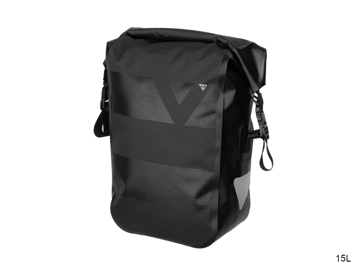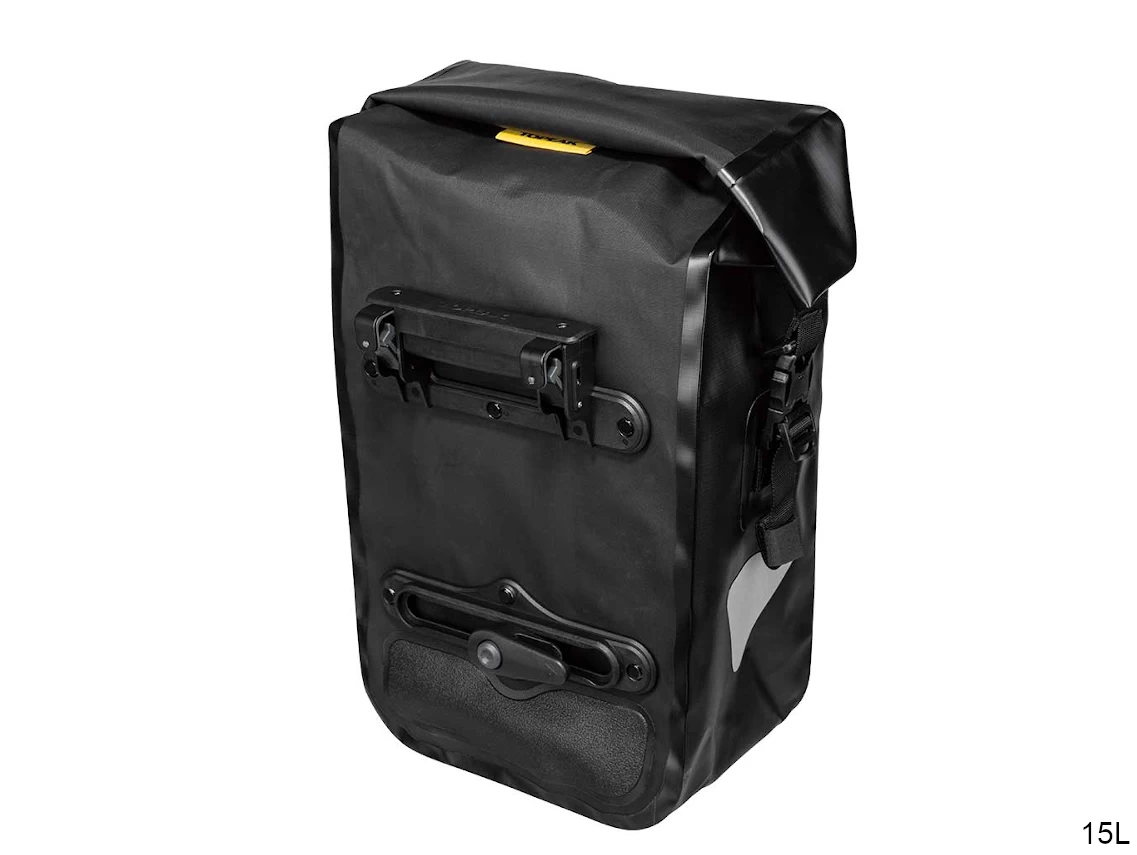 A watertight roll-top closure provides maximum protection from trail dust, road spray and nasty wet weather. Their new Handle Loc system quickly and securely attaches the pannier to the rack and is quickly removed with a simple upward press & pull of the top mounted carry handle.