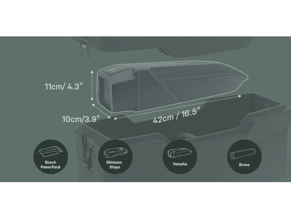 Built to go further! The E-Xplorer TrunkBox is an eBike specific spare battery carrier made of expanded polypropylene providing excellent impact absorption, water resistance, high strength and thermal insulation.