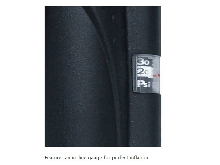 A powerful multi purpose dual action mini pump includes an in-line gauge.