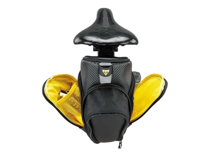 The Topeak Mondopack XL QuickClick Saddle Bagis an oversized saddlebag with two side opening panels provide huge access to all your gear and feature inner mesh pockets to keep items like keys and small tools secure while riding.