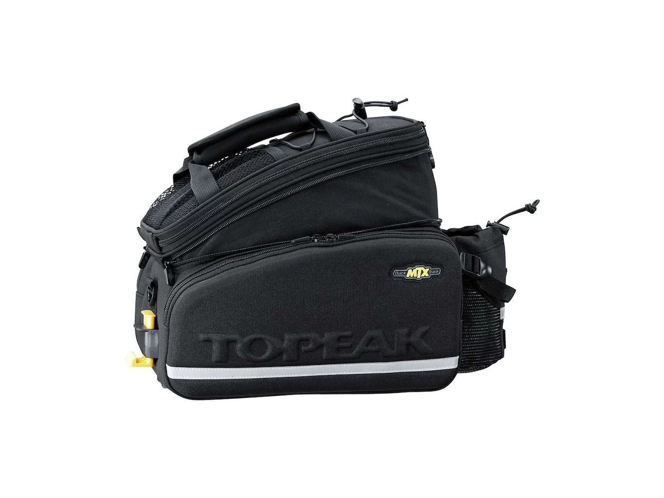 MTX TrunkBag DX featuring a divided main compartment, two zippered side pockets & rear water bottle holder. Our unique construction process combines molded panels & flexible fabric for rigidity & water repellency. Compatible with all MTX QuickTrack™ racks.