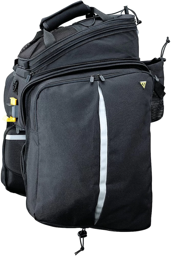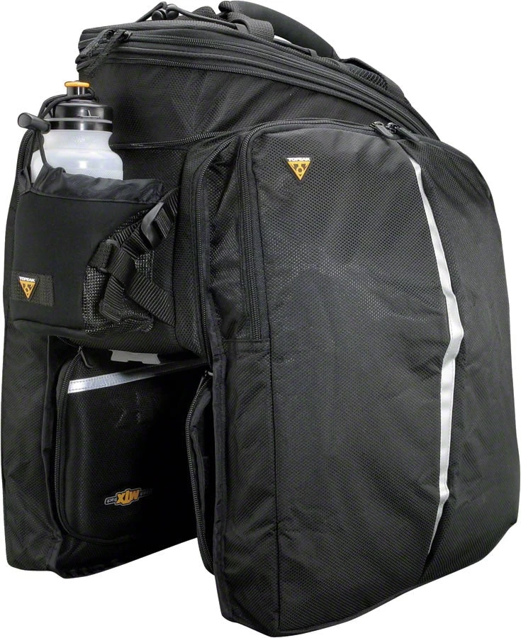 Large capacity MTX trunkbag featuring one divided main compartment with expandable top plus two side panels with expandable panniers.