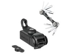 This weatherproof tool box contains an 8 function mini tool for basic repair and maintenance.