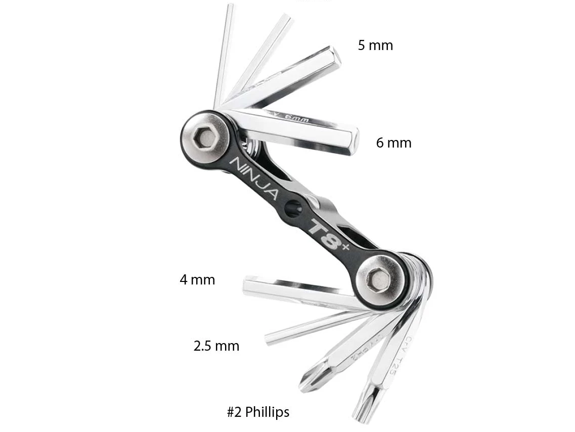 | Tools | 2 / 2.5 / 3 / 4 / 5 / 6 mm Allen wrenches T25 Torx wrenches #2 Phillips |