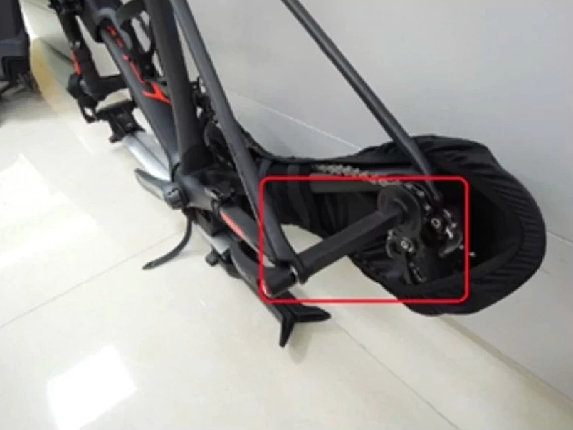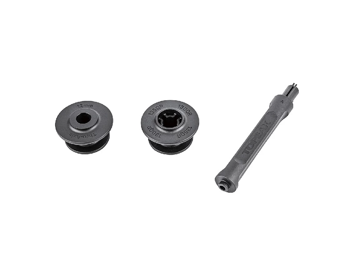 Replacement 5×130/135mm dummy hub and 12mm thru-axle and chain holder for Topeak’s Pakgo X bicycle transport case.