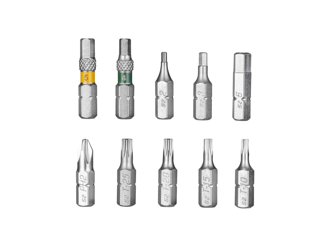 | Tools | 2 / 3 / 6 mm Allen bits 4 / 5 mm Allen bits (30 mm bit length) T10 / T15 / T20 / T25 Torx bits #2 Phillips screw driver bit |
