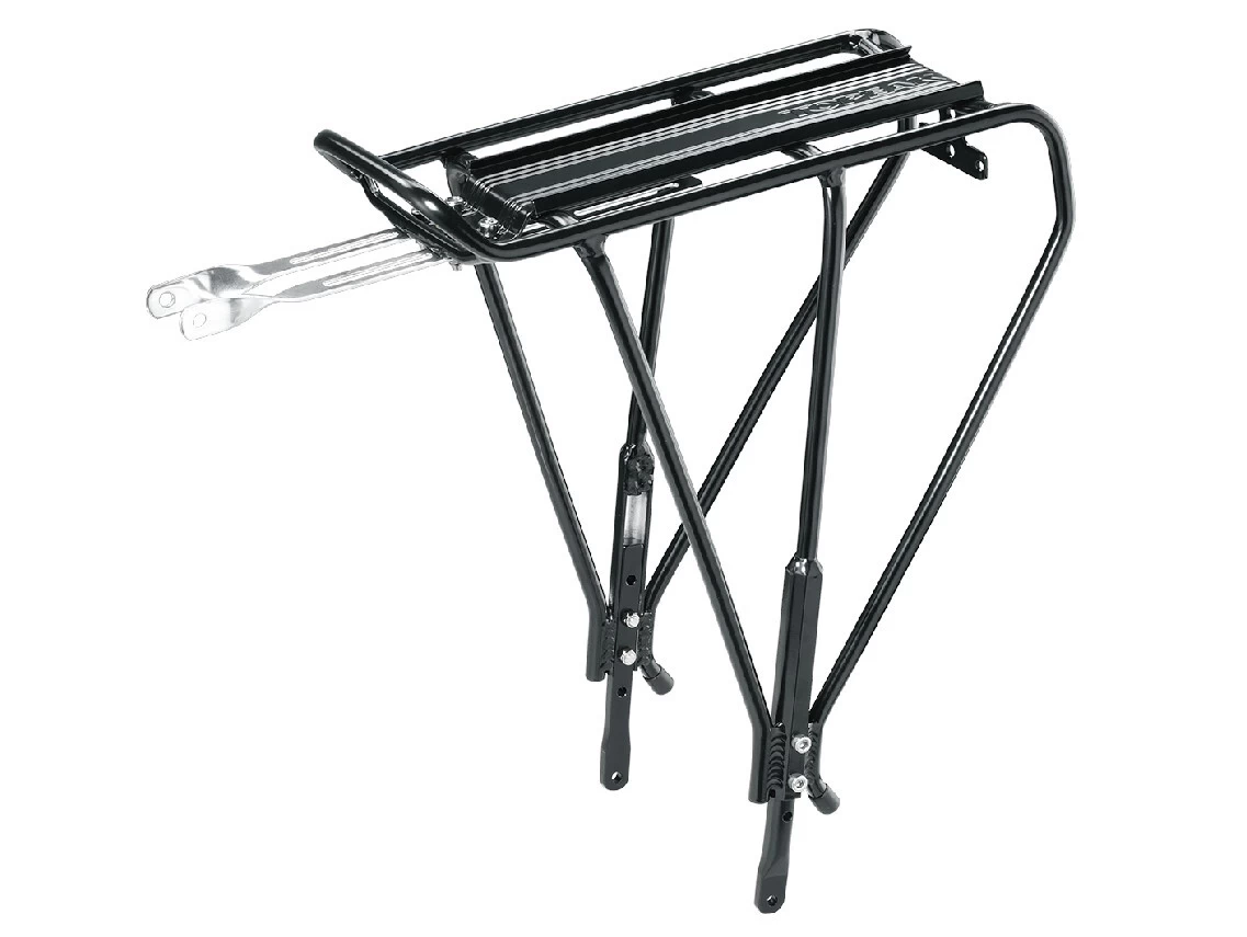 This one-size-fits-all aluminum tubular rear rack is equipped with adjustable legs to fit most 24” to 29” wheel MTB and 700C touring bikes.