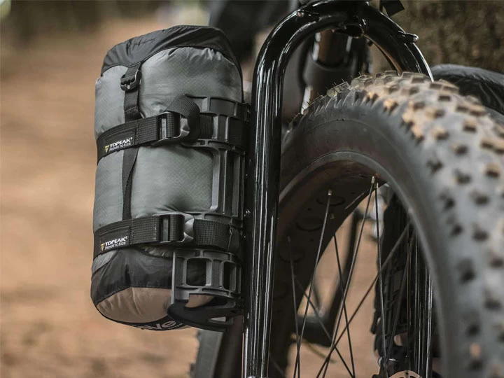 The included tie down straps provide the ability to carry DryBag, sleeping bag/pad, stuff sack, or any round shaped gear on your bike frame or fork with bottle bosses. A four hole mount design offers height adjustment of your load for better balance. VersaMount clamps also provide easy installation and flexible mounting options. Fits tubes Ø20 – Ø60mm.